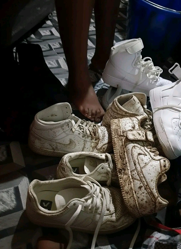 She explained that his company provides durable work shoes, but he refuses to wear them, saying he feels “comfortable” only in his white pairs. Even after she bought him black shoes, he abandoned them and continued buying new white ones, leaving her with the burden of cleaning.
